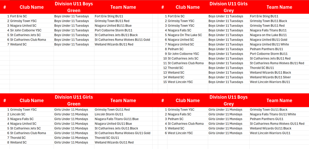 2026 Under 11's Division Alignment