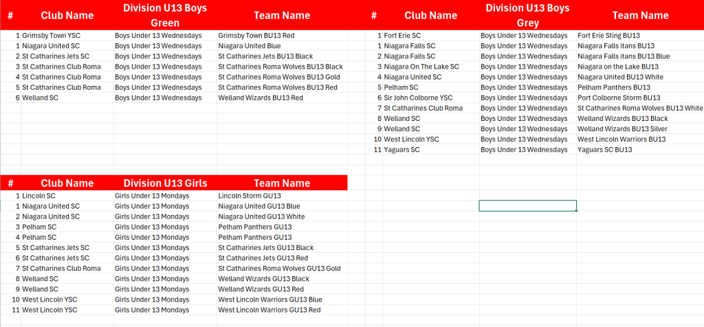 2026 Under 13's Division Alignment